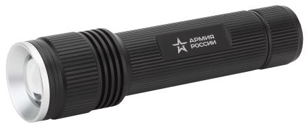 ЭРА Армия России Тополь - портативный фонарь премиум-класса с IP-защитой. Не боится пыли, дождя, коротких погружений в воду. Сверхмощный свет, равный двум фарам ближнего света автомобиля (1800 Лм). Фонарь совместной серии ЭРА и АО "Военторг", действующего на основании лицензии Министерства обороны РФ. Дальность светового луча - более километра! По методике ANSI Тополь добивает на 1216 метров, а его современные светодиоды - яркие и экономичные - дают качественный свет. Фокус регулируется. Пользователь имеет возможность самостоятельно настраивать свет в зависимости от задач - от дальнего направленного до ближнего заливающего освещения. Корпус фонаря ЭРА Армия России Тополь изготовлен из анодированного алюминия - этот материал не боится царапин и гарантирует изделию отличный внешний вид даже после долгих лет использования. Эргономичная конструкция и необычный дизайн - фонарь приятно держать в руках, на него обращают внимание окружающие. Узнаваемая звезда "Армия России" расположена на корпусе. Фонарь упакован в к